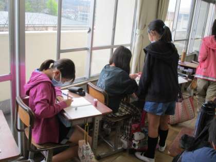 10/9(金) 授業風景 5年生 2 公開日 2020/10/09 更新日 2020/10/09 5年生 算数で、教え合い学習に取り組んでいるクラスもありました。友達や先生の力を借りたり、友達に教えたり、とても積極的に学習していましたよ。
