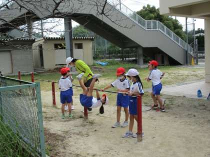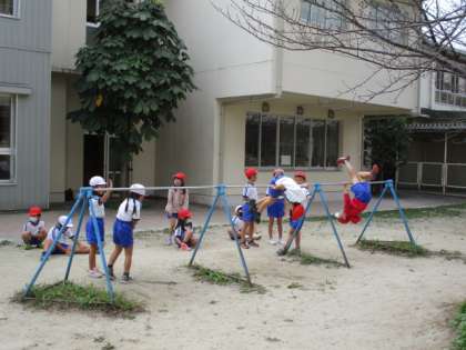 10/14(水) 授業風景 1年生 公開日 2020/10/14 更新日 2020/10/14 1年生 1年生は、体育で鉄棒運動に取り組んでいました。逆上がりのできる子もいましたね。 逆さ感覚や回転感覚を味わってね、この時期に。