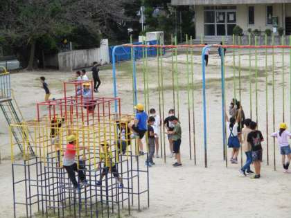 大放課に楽しそうに遊んでいる子どもたち。笑顔がとっても素敵でした。