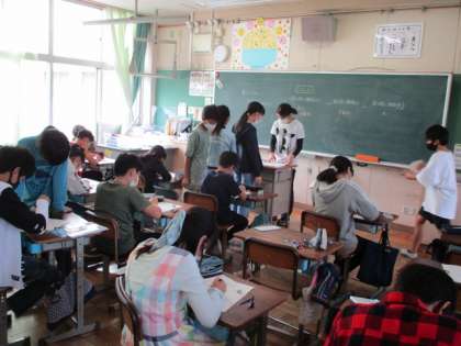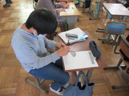 10/14(水) 授業風景 6年生 公開日 2020/10/14 更新日 2020/10/14 6年生 6年生は算数の授業でした。分度器やコンパスを使って、作図をしながら考えていました。このように操作しながら学ぶと、理解が深まりますね。