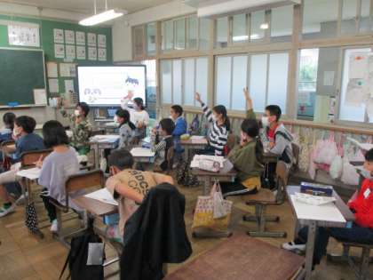 4年生の社会科の授業の様子です。とっても活気のある授業で、感心しました。