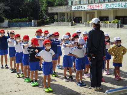 1年生は体育で鉄棒をしていました。天気がいいので、気持ちよく取り組めましたね。