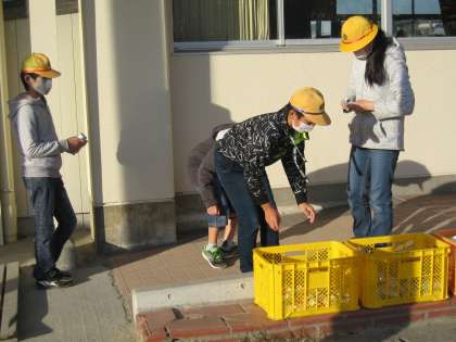 おはようございます。今日も真っ青な空が広がっています。昨日から始まった総務委員会による赤い羽根募金。今日もたくさんの岡田っ子が協力してくれました。毎週木曜日は、環境委員会による「ペットボトルキャップ」や「アルミ缶」の回収。今日も活躍する子どもたちの姿が見られます。