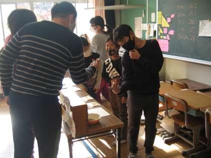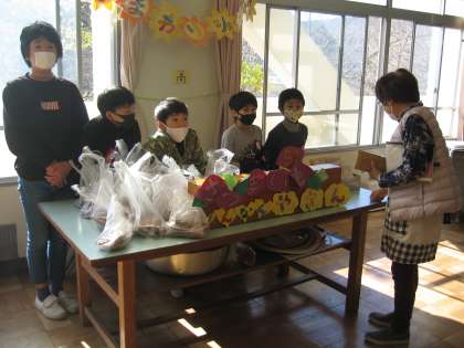 12/1(火) ひまわりショップ 公開日 2020/12/01 更新日 2020/12/01 ひまわり 大放課、「ひまわりショップ」がひらきました。「さつまいも」「ぎんなん」「ポップコーンのもと」「キラキラ石けん」「エコたわし」。そのどれもが、ひまわり学級のみんなで栽培したり、製作したりしたものです。「いらっしゃいませ」「ありがとうございした」ひまわれショップ、大盛況でした。今日のお土産ができました。