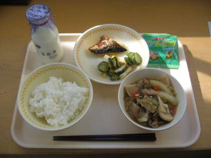12/1(火) 給食 公開日 2020/12/01 更新日 2020/12/01 給食 今日の献立は ごはん・ぎゅうにゅう さばのしおやき ぶたにくとはくさいのうまに きゅうりといかのすのもの あじつけかんそうどうふ です。