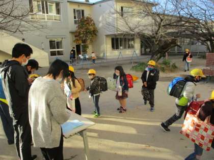 12/3(木) あいさつを交わす 1 公開日 2020/12/03 更新日 2020/12/03 岡田っ子広場 子どもたちとあいさつを交わしていると、心のエネルギーがわいてくるのが分かります。心の中に、「心のこもったあいさつをありがとう」という気持ちがわいてきて、自然と笑みもこぼれます。あいさつは心と心の架け橋ですね。