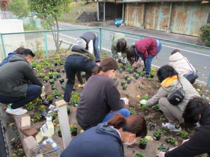 12/3(木)花ボランティアさん、ありがとう 1 公開日 2020/12/03 更新日 2020/12/03 PTA PTAの「花ボランティア活動」が行われました。PTA会長さんはじめ、たくさんの保護者の皆さんが参加してくださり、苗の移植作業をしてくださいましたよ。児童園芸委員会の会長・副会長によるお礼のあいさつもありました。