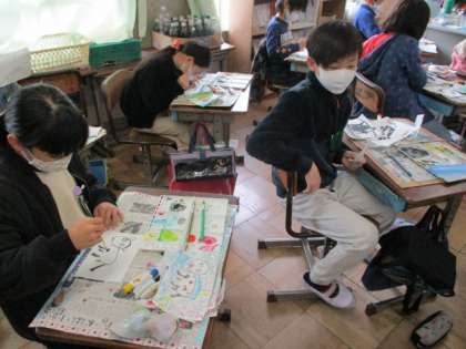 12/15(火) 授業風景 4年生 1 公開日 2020/12/15 更新日 2020/12/15 4年生 4年生は、図工でカード作りをしていました。一人一人の工夫が、とてもよかったです。表現活動は楽しいですね。