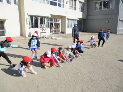 1年生は運動場で、体育の授業でした。とっても楽しそうな声が聞こえてきましたよ〜。チームを組んで、ルールを決めて鬼遊びをしていました。後半はなわとび運動に取り組んでいました。一生懸命応援する姿もありましたね。私も少しだけ、参加させてもらいましたよ