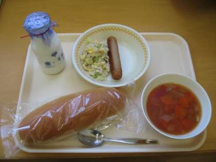 1/21(木) 給食 公開日 2021/01/21 更新日 2021/01/21 給食 今日の献立は ミルクロールパン・ぎゅうにゅう フランクフルト コーンサラダ(たくじょうマヨネーズ) ミネストローネ です。