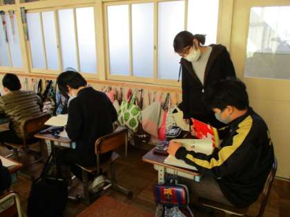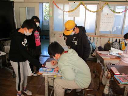 1/27(水) 授業風景 6年生 公開日 2021/01/27 更新日 2021/01/27 6年生 6年生は、国語や英語、算数の学習に取り組んでいました。英語はリスニングで、一応英検2級の私も耳を澄ましてみましたが、注意していないと聞き逃してしまいそうでしたよ。子どもたちは、ちゃんと理解しているようで感心です。算数は、教え合い学習がすすんでいました。「教えることは学ぶこと」。より理解が深まりますね。