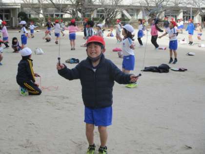1/29(金) なわとび大会 2年生 2 公開日 2021/01/29 更新日 2021/01/29 2年生 先生が決められた時間跳び続けられたこの数を数え、得点にします。みんなの笑顔が充実感を物語っているように思いますよ。寒風を吹き飛ばしたかな。