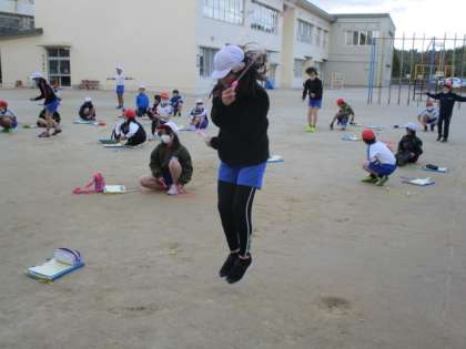 グラウンドは風が強かったので、全学年が運動場に変更して、無事「なわとび大会」を行うことができました。寒い一日でしたが、子どもたちの熱気で、空気が暖まったように感じました。子どもたちの笑顔を見ると、工夫をして行事を行うことが必要なことを痛感しました。おつかれさま!