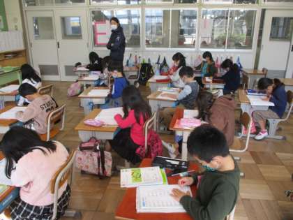 2/8(月) 授業風景 1年生 公開日 2021/02/08 更新日 2021/02/08 1年生 1年生は、国語や算数の授業に、熱心に取り組んでいました。算数では、数図ブロックを操作しながら考えましたよ。