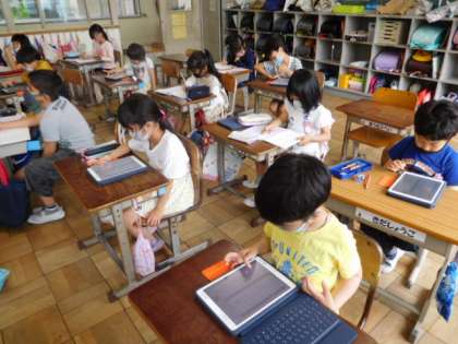 5/20(木)11 公開日 2021/05/20 更新日 2021/05/20 全校 2年算数です。こちらの学級は計算問題の復習です。ドリルが終わった子は、iPadへ配信される自習問題に取り組んでいます。
