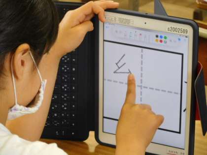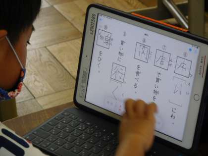 2年国語です。iPad上で行ったプリントの答え合わせをしています。iPadに直接字の練習をすることもできます