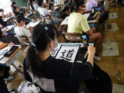 5年書写です。「道」の練習です。落ち着いた雰囲気で集中して練習ができています。