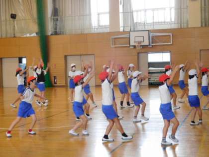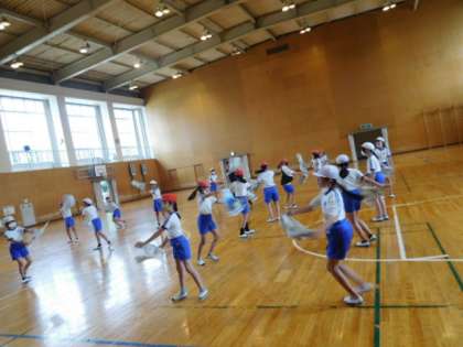 5年生体育です。ダンスの練習です。覚えるのがとにかく早い。息のぴったり合ったダンス、かっこいいです。