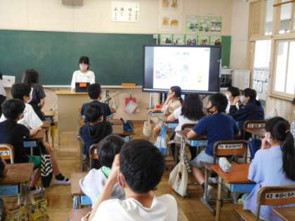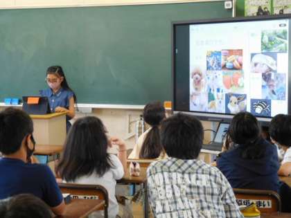 6年総合です。iPadで作成した自分のプロフィールの発表です。表現の仕方にそれぞれの個性があふれています。