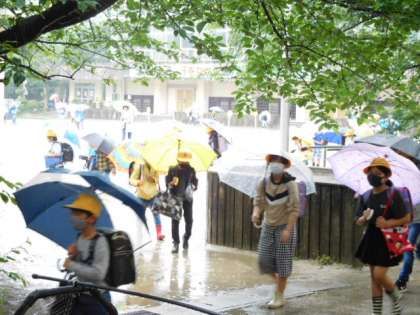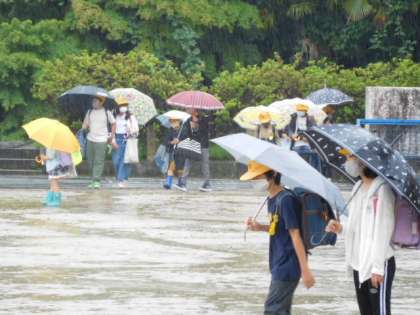 おはようございます。今日はあいにくの雨模様、運動場も大きな水たまりがあちらこちらにできています。