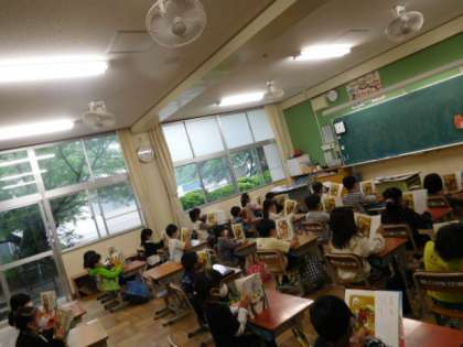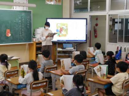 1年国語です。「はなのみち」の音読をしています。みんな姿勢よく読めていますね。