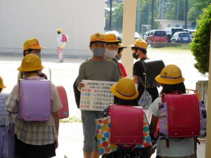 教頭先生や子どもたち同士で朝のあいさつが交わされ、5月最後の日の1日が始まりました。