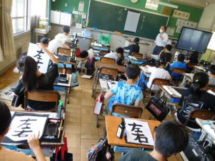 4年書写です。「左右」の練習です。全体の形に気をつけてバランスよく書きます。