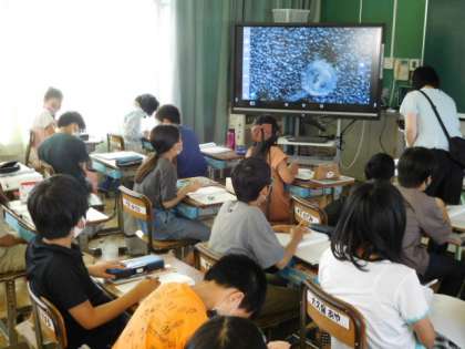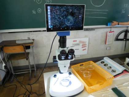 5/31(月)15 公開日 2021/05/31 更新日 2021/05/31 全校 5年理科です。モニタ付きの双眼実体顕微鏡を電子黒板につなぎ、メダカの卵の観察をしています。観察の時間が多くとれるので、みんなじっくりスケッチをすることができました。