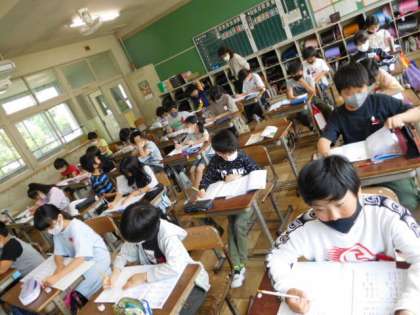 6/1(火)12 公開日 2021/06/01 更新日 2021/06/01 全校 4年算数です。既習事項を、教科書やドリルの問題で復習しています。理解できたことをできるにしていく大事な過程です。どの子も集中して取り組んでいます。