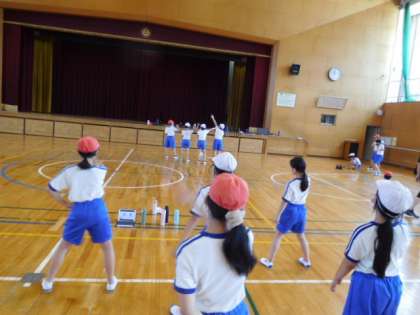 6/1(火)19 公開日 2021/06/01 更新日 2021/06/01 全校 5年体育です。表現運動のダンスの練習です。iPadから流れる動画を参考に各班で練習します。自分達の完成度に合わせて、動画を繰り返し見ることができるのはありがたいですね。