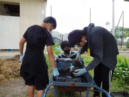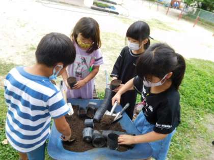 6/2(水)12 公開日 2021/06/02 更新日 2021/06/02 全校 今日も園芸委員、お助け隊がポットに土を入れる作業を行って事前準備をしてくれました。みんな飲み込みが早く、昨日よりも手際よく作業を進めてくれました。協力ありがとう。