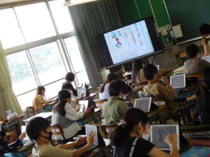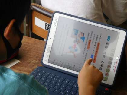 6/3(木)7 公開日 2021/06/03 更新日 2021/06/03 全校 5年国語です。和語・漢語・外来語の学習です。デジタル教科書で電子黒板と同じ画面を表示させて紙の教科書を使わずに授業をしています。デジタルマーカーで色分けをして大事なところをマーキングしています。