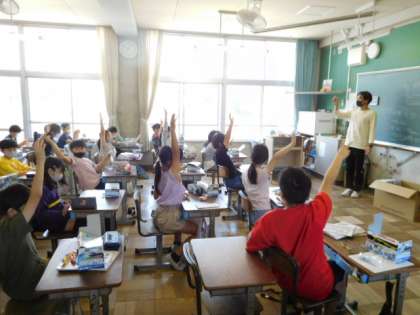 6/3(木)15 公開日 2021/06/03 更新日 2021/06/03 全校 4年理科です。電気を通すもの通さないものをの回路を作って確かめています。しっかり実験ができたので結果の発表も意欲的です。