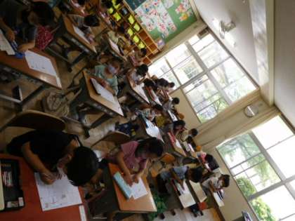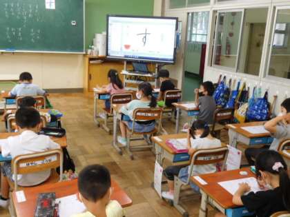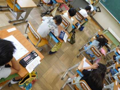 1年国語です。「す」の練習です。2画目の方向が変わるところが難しいですが、熱心に練習しています。