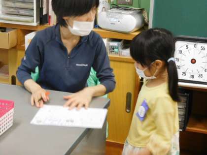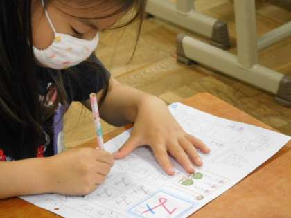 1年国語です。「み」の練習です。きれいに書けると先生が励ましてくださいます。やる気がわいてきて、さらに頑張って練習しています。