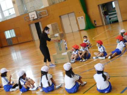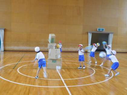 6/4(金)9 公開日 2021/06/04 更新日 2021/06/04 全校 1年体育です。真ん中に積み上げた段ボールに、みんなで力を合わせてボールを投げて、崩します。自然に投げる力がついてきます。