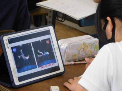6/4(金)13 公開日 2021/06/04 更新日 2021/06/04 全校 4年体育です。今日も雨で運動場が使えませんので、動画で技の研究をしています。スロー再生で細かい体の動きまで確認できるので、イメージがつかみやすいですね。