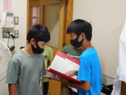 おはようございます!今日は朝会の日です。児童会役員や環境委員の子どもたちが、念入りなリハーサルをしています。