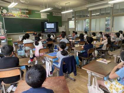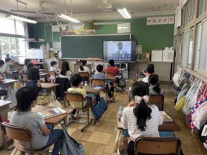 6/7(月)3 公開日 2021/06/07 更新日 2021/06/07 全校 「校長先生のお話」では、岡田小4つの願いの一つ「ありがとう」について話しました。「ありがとう」があふれる学校になるように願いを込めて「ありがとうの勲章」をたくさんあげてほしいと伝えました。