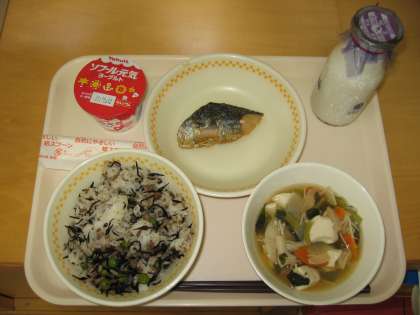 6/7(月) 給食 公開日 2021/06/07 更新日 2021/06/07 給食 今日の献立は ごはん・ぎゅうにゅう にくひじきごはんのぐ さわらのあまずあんかけ とうふとゆぱのすましじる ヨーグルト です。