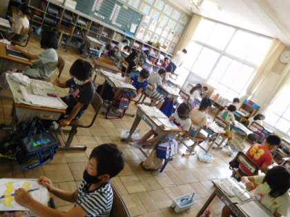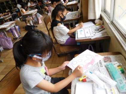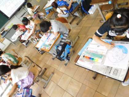2年図工です。「ふしぎなたまご」の色ぬりです。絵の具の使い方を練習しましたので、その成果を発揮して、イメージ通りの色が付けられるといいですね。