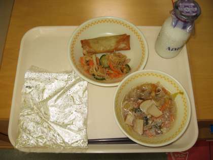 今日の献立は ちゅうかめん・ぎゅうにゅう ごもくかけじる はるまき きりぼしだいこんのちゅうかあえ です。