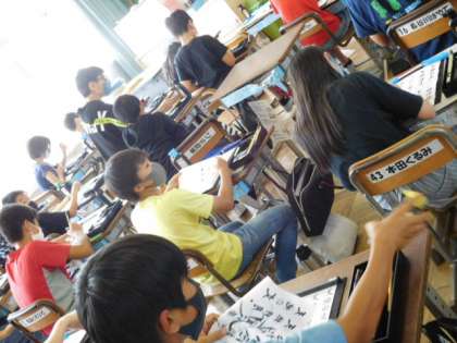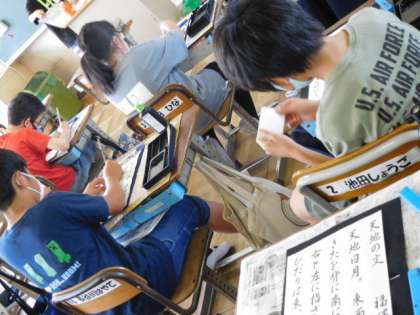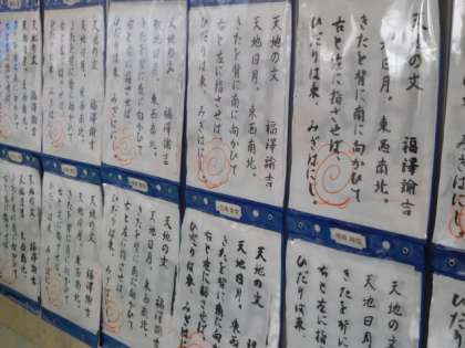 6年書写です。小筆の練習です。国語で学習している福沢諭吉の「天地の文」で練習しています。