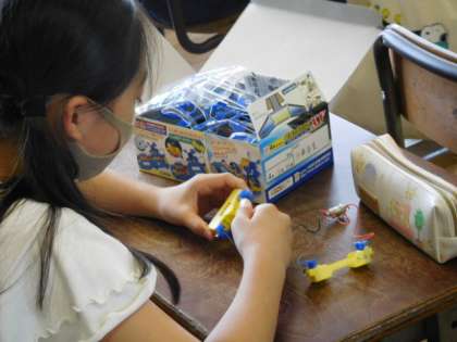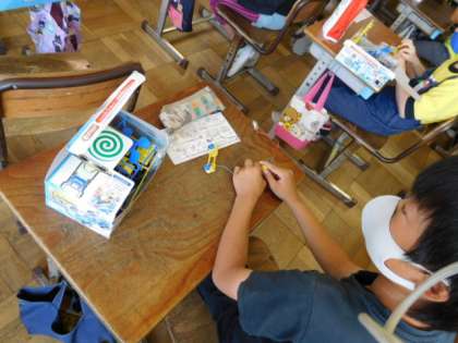 4年理科です。豆電球を使って回路を作成しています。うまく回路ができていれば、豆電球がつくはずです!どうかな?