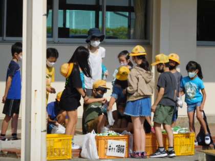 環境委員会のリサイクル活動が始まりました。たくさんの人が協力してくれています。「ありがとう」声が飛び交います。