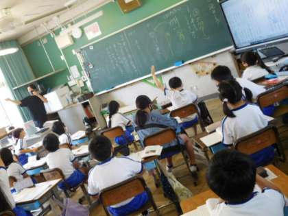 4年国語です。説明文の読み取りをしています。4年生も自分の意見を堂々と発表しています。