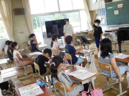 6/11(金)4 公開日 2021/06/11 更新日 2021/06/11 全校 4年音楽です。2拍子の式をする練習です。指名された人の式に合わせてみんなで歌います。強弱を付けたり、速さを変えたりしながらみんなをリードする姿はまさに、指揮者です。