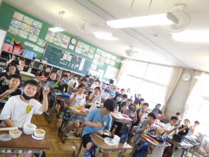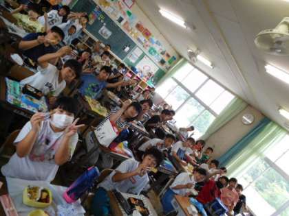 6年生は修学旅行が延期になったため、昨日、今日とお弁当です。作ってくださった方に感謝して「いただきまーす」