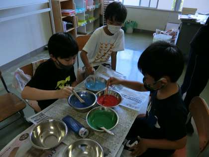 6/14(月) 授業風景 ひまわり 公開日 2021/06/14 更新日 2021/06/14 全校 和紙に色染めをするために,絵の具を準備していました。水と絵の具の量を調節しながら,しっかり混ぜ合わせていました。 どんな模様ができるか,楽しみですね。