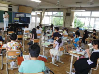 5年音楽です。リコーダーの練習です。かけ合いや重なりを生かして演奏することがめあてです。